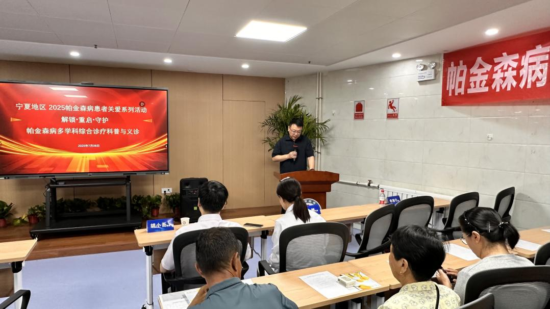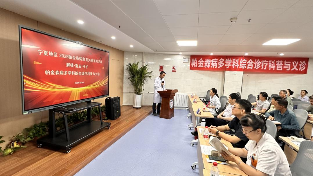 为深入贯彻国家卫生健康事业发展要求,提升医疗服务质量,关爱帕金森病患者群体,宁夏地区2025年度帕金森病患者关爱系列活动于2025年7月6日在我院举办。本次活动特邀上海市第四人民医院神经外科胡小吾主任医师、宁夏医科大学总医院神经内科李海宁主任医师、宁夏医科大学总医院神经内科邵娜副主任医师,围绕帕金森病多学科综合诊疗展开深入科普与义诊,吸引了众多帕金森患者及家属踊跃参与,同时也得到了我院职工的积极响应。