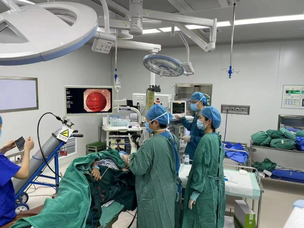11月3日,我院消化内科主任在上诊期间,收住一位“十二指肠降部黏膜下隆起(间质瘤可能)”诊断的21岁男性患者。11月6日下午经MDT多学科联合会诊讨论手术术程,此类手术穿孔几率高,一旦发生穿孔可由内镜转外科腹腔镜进行修补术。医院定于11月8日下午在手术室由消化内科主任主刀联合外科主任行内镜下“十二指肠降部黏膜下隆起剥离术(ESD)。该手术术程半小时,手术顺利完成,患者安全返回病房。术后病理结果示:十二指肠异位胰腺。手术在整个剥离过程中,通过内镜的旋转、提拉等操作充分暴露手术视野,仔细辨别肿瘤与肌层的界限,遇到小血管时可使用电凝或止血钳止血,对于较大血管可能需要提前预防性夹闭,确保手术视野清晰。