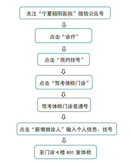 根据公安部《深化公安交管“放管服”改革优化营商环境12项措施 》的贯彻落实,宁夏颐阳医院被银川市公安局交通警察分局定为驾考定点体检单位。驾考体检人员需携带本人身份证原件通过医院微信公众号挂号预约驾考体检。
