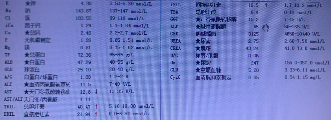 图1 患者术前肝功全套(胆红素高于正常范围)
