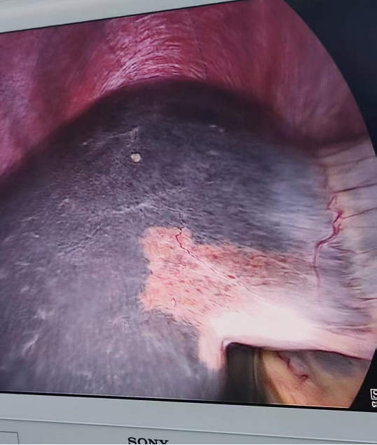 图2患者术中肝脏照片,肝脏呈现黑褐色(正常肝脏呈现红棕色)