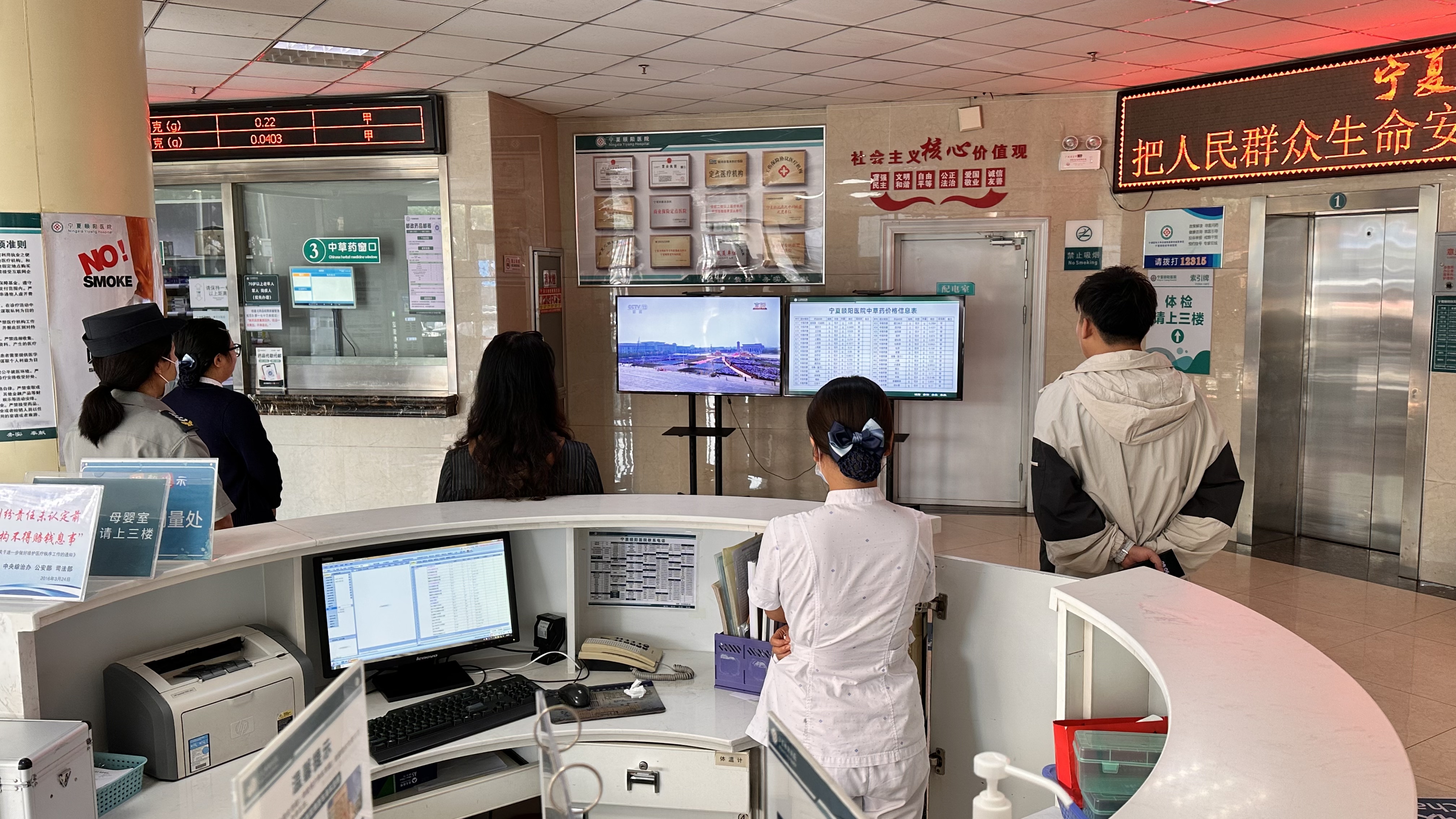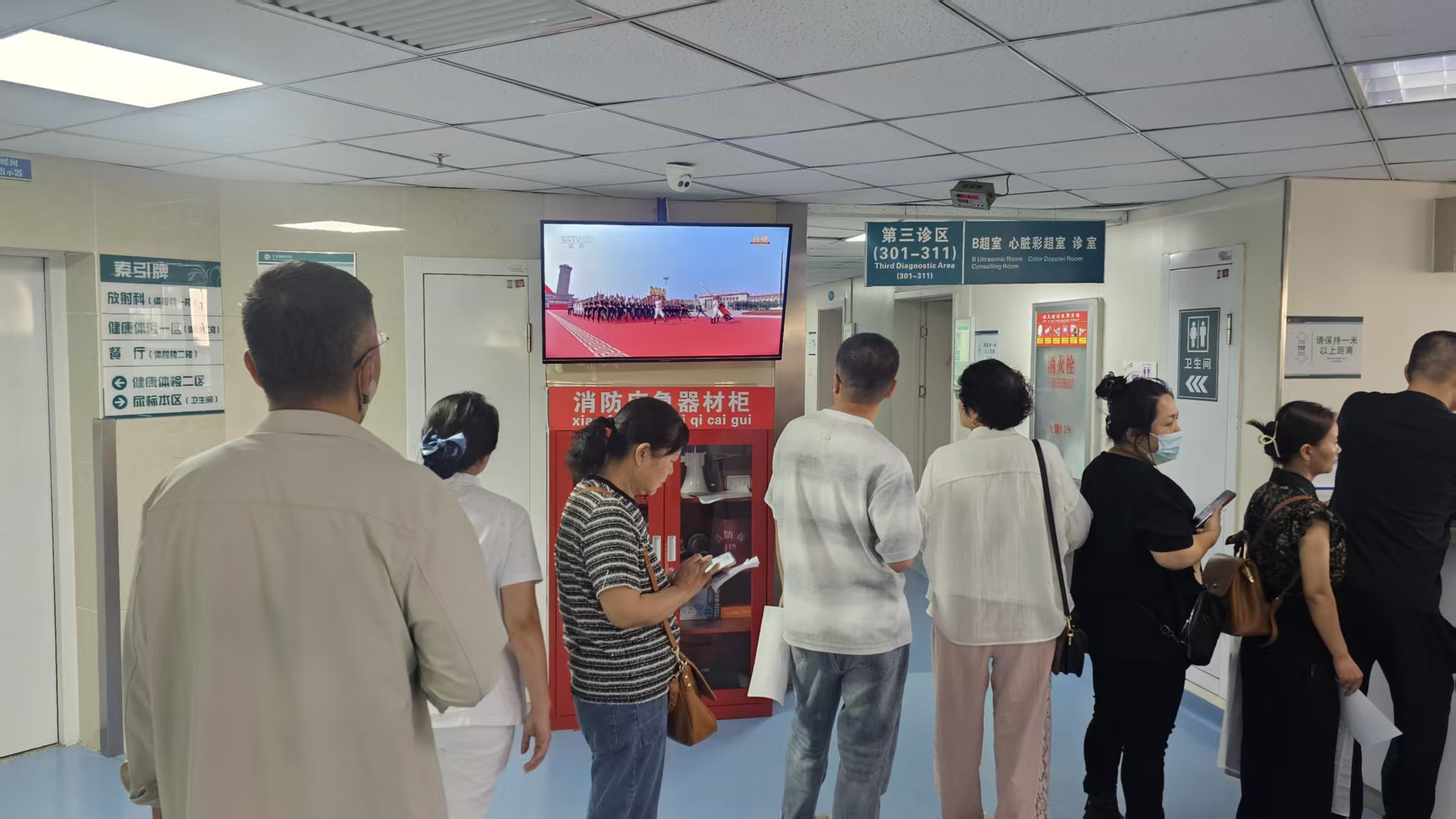 上午阅兵仪式启动前,医院负一楼会议室早已座无虚席。医护人员们挤出休息间隙提前到场,大家挺直脊背、目光灼灼,在安静有序的氛围中,满心期待盛典开启。与此同时,门诊各楼层电视同步切换至阅兵转播频道,不少就诊患者也自发驻足,与医护人员一同将目光聚焦屏幕,共同感受属于全体中华儿女的荣耀时刻。