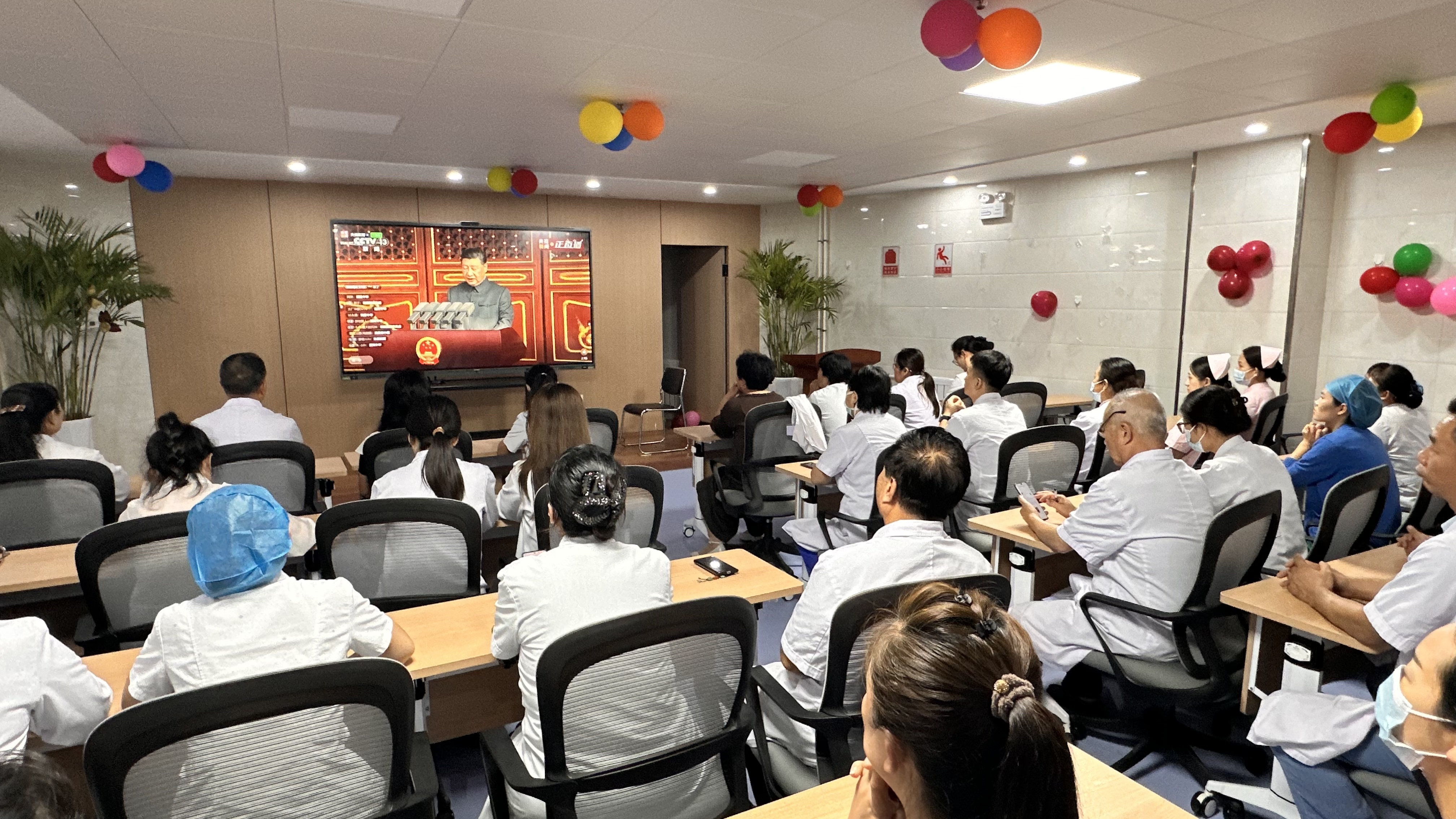 2025年9月3日,中国人民抗日战争暨反法西斯战争胜利80周年纪念阅兵仪式在北京天安门广场隆重举行。为引导全院人员铭记历史、缅怀先烈、汲取奋进力量,我院精心组织医护人员,通过集中观看与分散收看相结合的方式,同步见证这一承载民族记忆、彰显大国担当的庄严时刻。