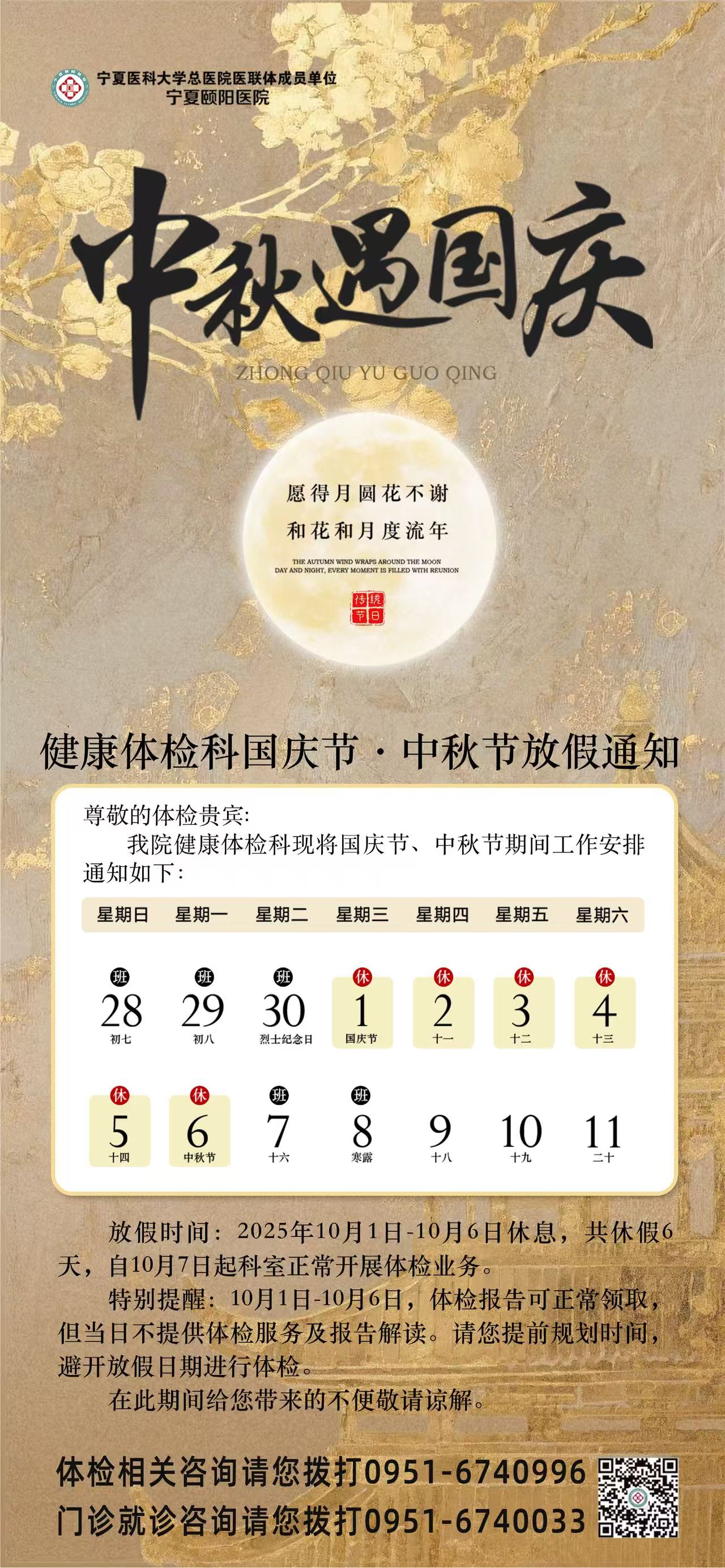 【放假通知】宁夏颐阳医院健康体检科“中秋”“国庆”放假通知