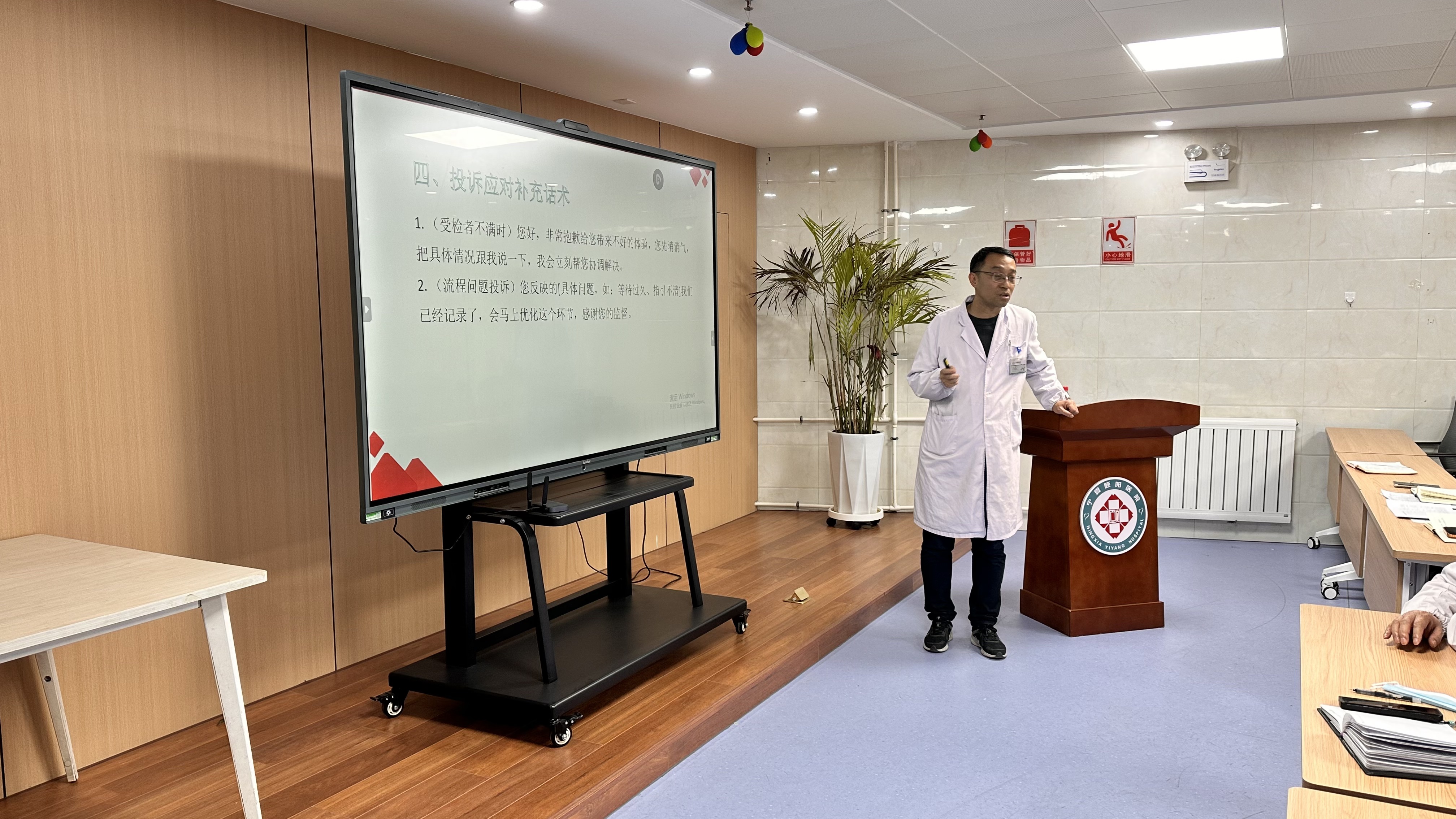 宁夏颐阳医院体检科主任表示,此次培训是医院落实国家政策,规范医疗行为的重要举措。体检科、超声科、放射科作为直接服务客户的关键科室,其服务质量直接关系到医院口碑与客户信任。此次培训旨在推动多科室统一服务标准、强化协作意识,从源头降低投诉风险。未来,体检科将持续开展常态化培训与案例研讨,不断优化服务流程、提升医护人员专业素养与沟通能力,以更优质、更规范、更贴心的服务,为广大群众提供更有温度、更可信赖的医疗健康服务。